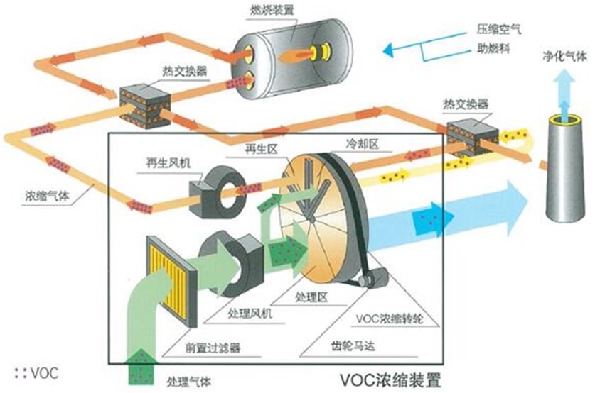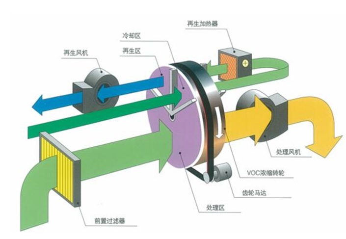 沸石转轮吸附-净化装置是一种可连续进行吸附和脱附操作的气体净化装置。
